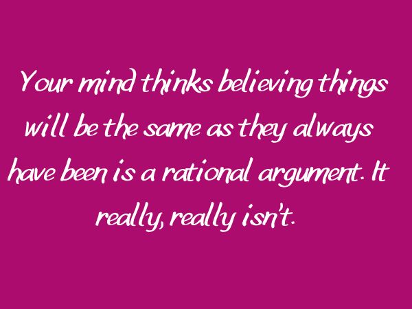 We hold onto situations that don’t make us happy for fear things will get worse if we let them go, or we won’t get what we actually want, so it is safer not to risk it. We trudge on when things are no longer working in hopes it will get better, but they can’t turn around if we are harboring beliefs and feelings that contradict what we actually want.
