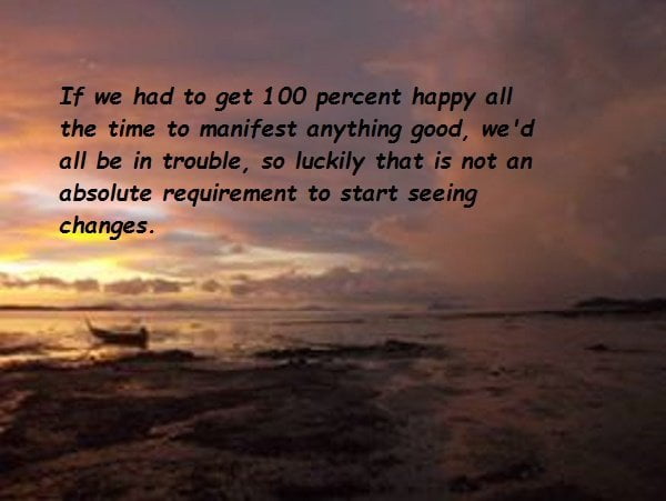 Obviously, the more we can raise our energy, and focus on what we want instead of what we don’t, the faster our manifestations will come in. But, being in some perfect emotional state is not a requirement, luckily, to start getting some of the good stuff.