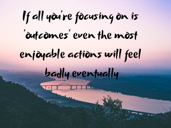 If you’re taking actions with a strong attachment to a specific result, even an action that could be very enjoyable won’t feel good. For example, many people who get into a line of work about which they feel very passionate often get a taste of this sooner than later because it all becomes about getting stuff from people, making money.