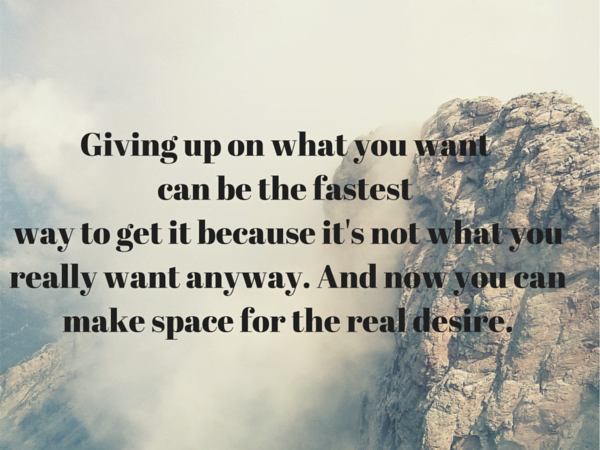 Thanks so much for your comment and I am so glad you enjoyed the podcast…I really love doing them and getting that positive feedback is nice…I have an ego too 😉 I like how you defined ‘giving up’–I think you brought up a lot of excellent points. It isn’t about giving up on getting the good stuff, it is giving up all that is standing in the way, namely the desperate wanting.