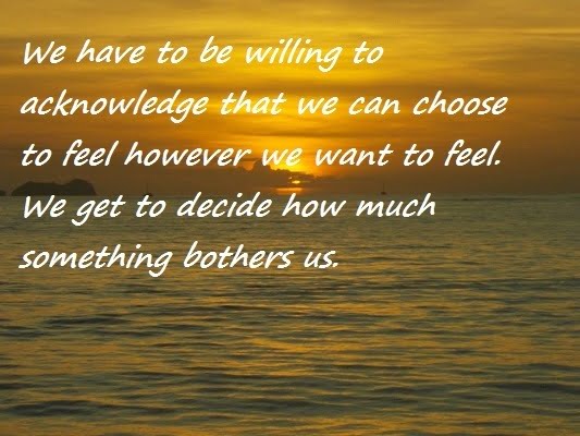 We feel very justified in, and entitled to, feeling badly about the problems we have in our life, but we have to be willing to adopt a different perspective. We have to be willing to acknowledge that we can choose to feel however we want to feel. We get to decide how much something bothers us. Now, you’ll have your moments, I surely did. I’m not talking about becoming some sort of Buddha.